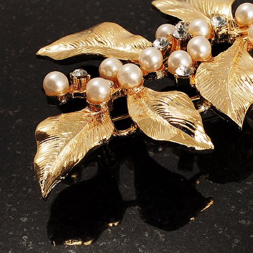 -. Title : Gold Plated Crystal Simulated Pearl Floral Brooch/Pendant