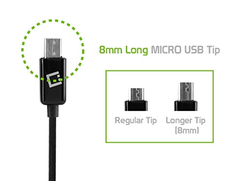 -. Binding : Wireless Phone Accessory -. Brand : Cellet -. Color : Black -. EAN : 0800768679452 -. Feature : Extra-long 8mm micro USB connector for devices with recessed micro USB ports. Extended connector ensures full connectivity / Extended micro USB connector / Features USB 2.0 male to micro USB male connectors. Sync and transfer files to and from your computer from your device / USB 2.0 connector can be pled into any AC adapter (sold separately) or computer / Hassle Free Manufacturer's Warranty - This item has a 3 year limited warranty. Please visit Cellet's Amazon storefront or website for detailed warranty information -. Label : Cellet -. Manufacturer : Cellet -. Model : 418901 -. MPN : 418901 -. PackageQuantity : 1 -. PartNumber : 418901 -. ProductGroup : Wireless -. ProductTypeName : WIRELESS_ACCESSORY -. Publisher : Cellet -. Studio : Cellet -. Title : Cellet Extra Long 8mm Tip Micro USB Charging/Data Sync Male Cable for Samsung Galaxy S4 S6 edge Note 4 5, LG G4 - Retail Packaging -. UPC : 800768679452