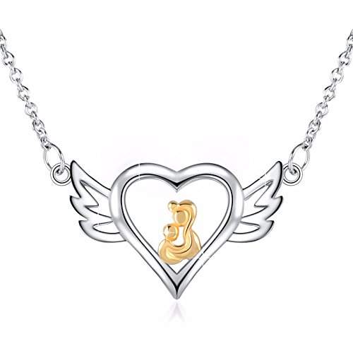 -. Feature : The Sterling silver necklace featuring heart pendant with The mother angel and child holding hands.Detailed with 18k Gold plated adds more romantic aroma, making it the best gift to express your sincere love. / Comes in a fine gift box, and 18 inches box chain design with 14k white gold plate 925 silver and secures with sP.R.Ing ring clasp. Ideal gifts for Valentines Day, Mothers Day, Anniversary Day and Birthday to your girlfriend, daughter, wife and mom.Don't let this special gift slip by without the 'angel' in your life receiving your 'gift of choice.' / ANGEMIEL products are genuine 925 Sterling Silver. 100% safe for sensitive skin. Using the Diamond Standard of technology, a micro-painted enamel makes ANGEMIEL pendants eye catching and red. All of the stone process and mosaics are done under a microscope by a top-level master. / ANGEMIEL is a brand of confidence and attitude. Every gemstone and Crystal undergoes rigorous screening. Whether by color, cut, and clarity, all of ANGEMIEL's pieces achieve the highest levels of certification standards. / If any problem arises, please feel free to contact us ! Top notch customer service, 100% satisfaction and money back guarantee. ANGEMIEL launches new products monthly! Celebrate everything that makes her special with unique and beautiful gifts!