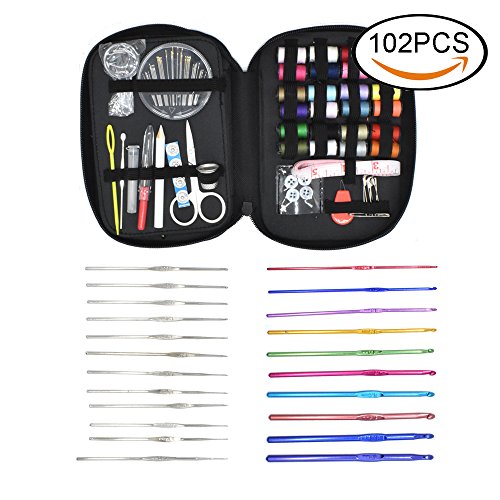 - SEWING KITS & CROCHET HOOKS It's complete with all the necessary tools you will need in sewing, repairing and crocheting. Including 22 sized high quality crochet hooks, 30 sized sewing pins, 24 muli-color of spools of thread, 2 scissors, needle threader and a series of sewing accessories. This set will meet your all different needs for sewing and crocheting