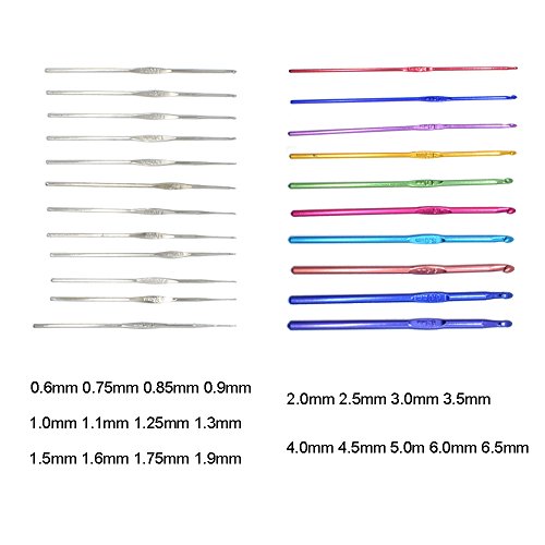 - CROCHET HOOKS: 22 pieces Crochet Hook in two rows packed in leather bag.Every piece marked with its own size.11 pieces in silver color and the other 11 pieces in the colors