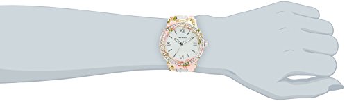 -. Feature : Floral watch with crystal-accented bezel, luminous hands, and Roman numeral/stick indices / 39 mm metal case with mineral dial window / Japanese quartz movement with analog display / Alloy band with jewelry-clasp closure / Not water resistant
