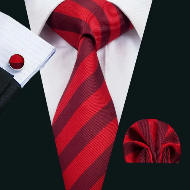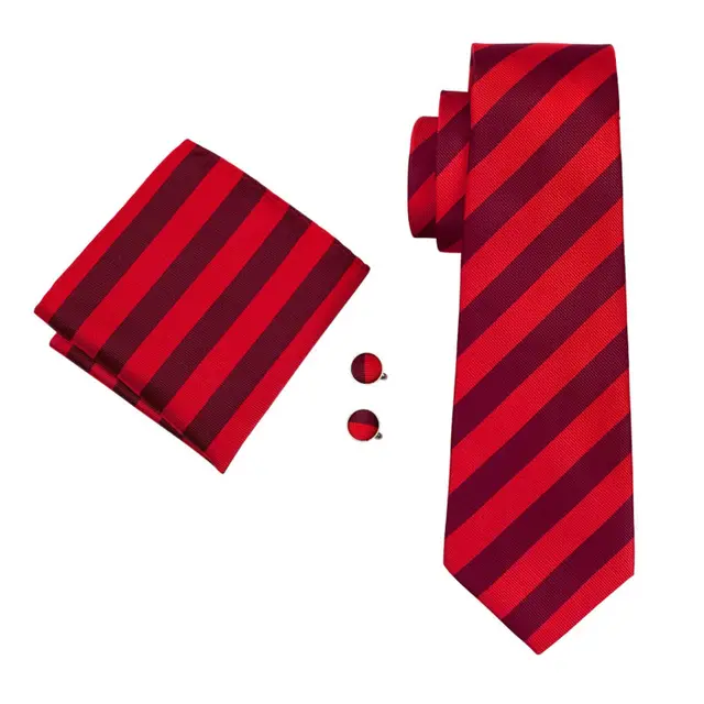 | [해외]LS-1475 배리. 좋아서 클래식 남성 넥타이 100% 실크 레드 스트라이프 넥타이 손수건 커프스 세트 남성 웨딩 파티 비즈니스 |