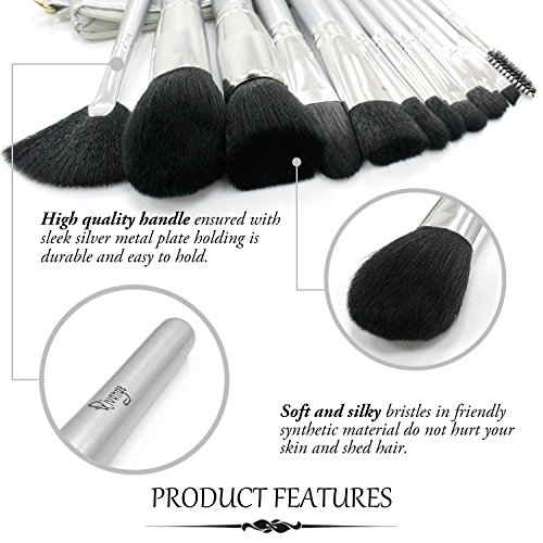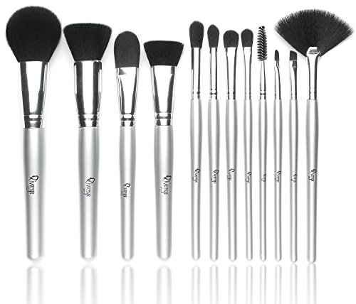 Qivange Makeup Brushes, Synthetic Foundation Eyeshadow Fan Brushes Set+Sponge Puff(12pcs,Silver)