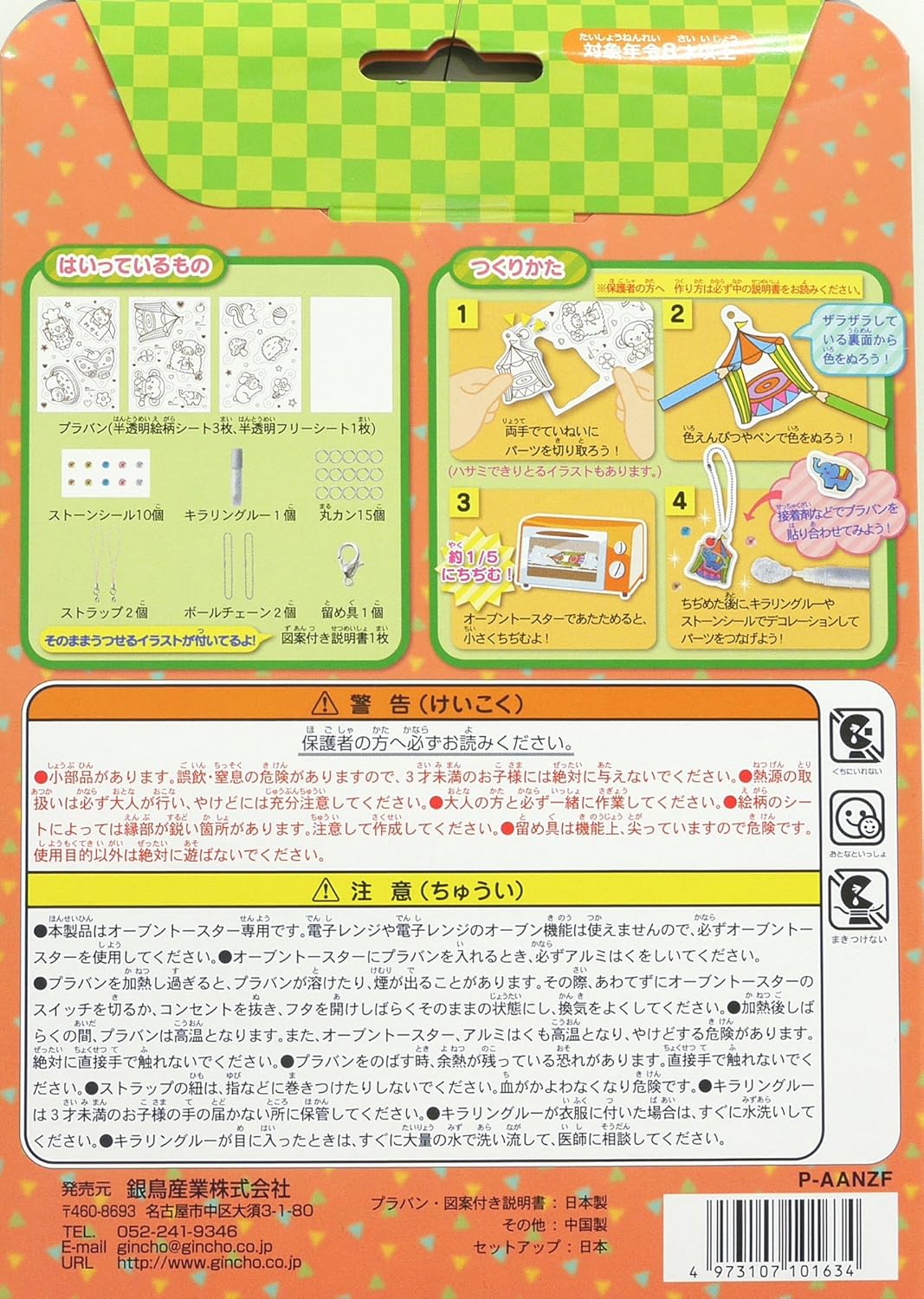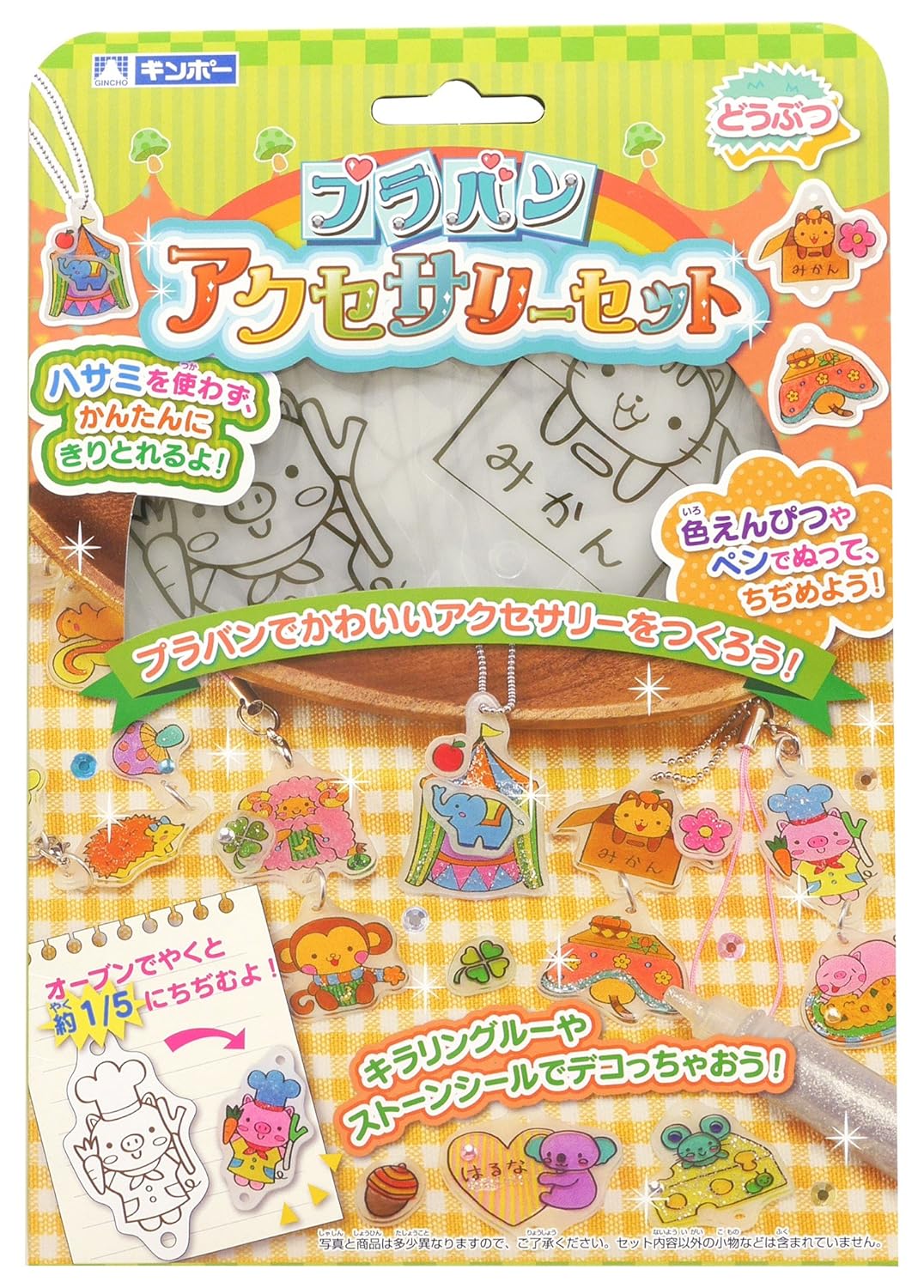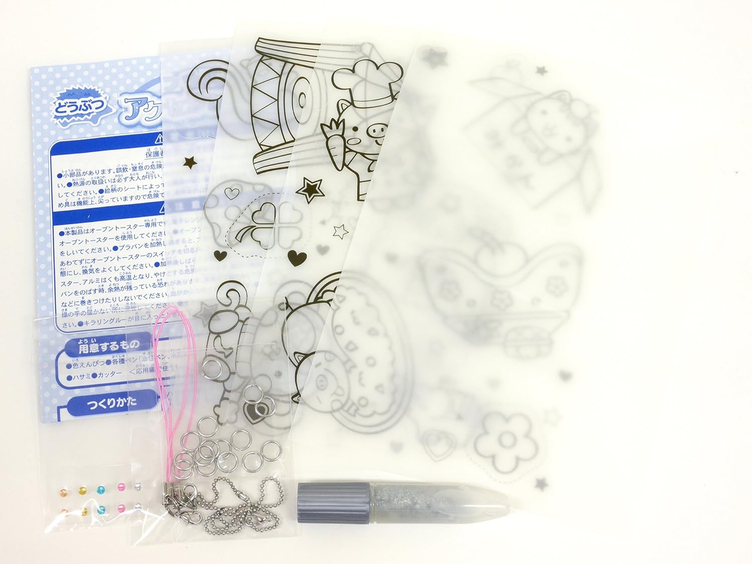 品番:P-AANZF 仕様:手芸キット 色・柄:どうぶつ セット内容:プラバン(絵柄シート3枚・フリーシート1枚)、ストーンシール、キラリングルー、丸カン、ストラップ金具、ボールチェーン、留め具、図案付き説明書 用意する物:色えんぴつなどの着色できるもの、オーブントースターなど 対象年齢:8才以上