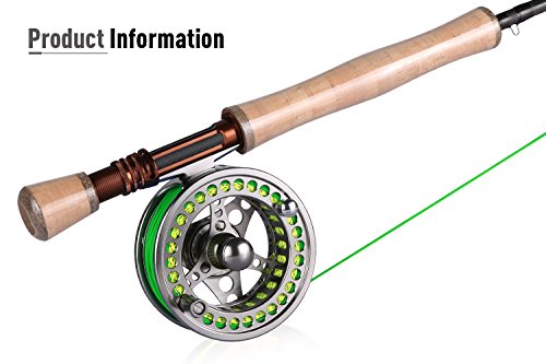 The contents of the package: A fly fishing rod which is 4 sections (The 5/6 rod is 9 feet and the 7/8 rod is 10 feet); A fishing reel; A complete fishing line set: WF5F/WF7F line, backing, leader and tippet; 16 pieces of flies with box. The elaborate collocation package includes necessary accessories for fly fishing, that eliminates shopping trouble and provides a good guideline for novice; A case holds everything that is included in the package, very convenient and travel friendly