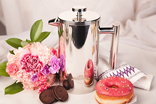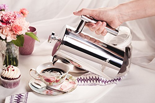 PREMIUM DESIGN - The Piterville french coffee press is made from high-quality #304 stainless steel. Mirror finish design adds a highly reflective and polished look to our french press coffee maker. It will be an elegant and attractive detail for any kitchen. Moreover, it would be a stylish gift for all coffee and tea lovers