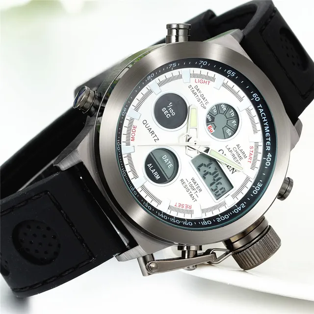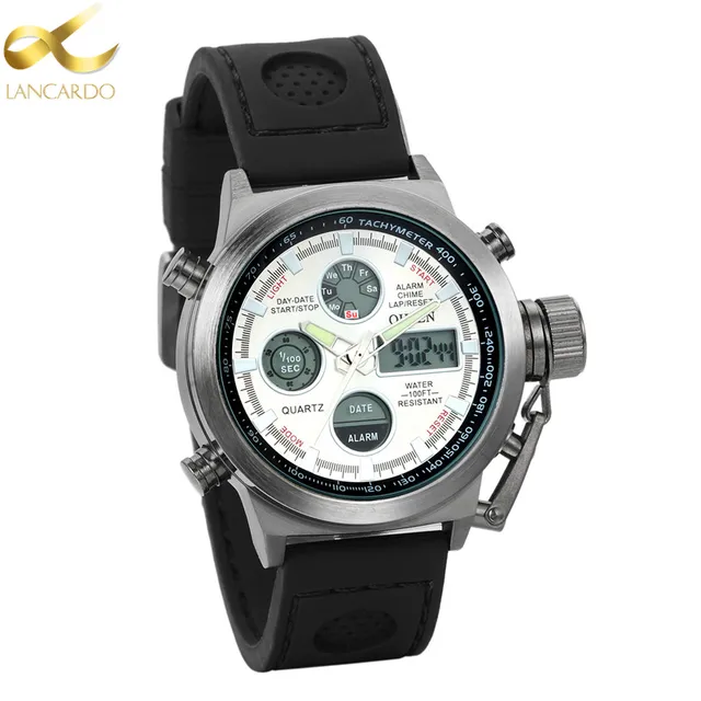 | [해외] Lancardo 남성 스포츠 시계 군사 디지털 시계 듀얼 디스플레이 아날로그 석영 시계 브랜드 남성 30 메터 방수 손목 시계 |
