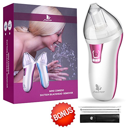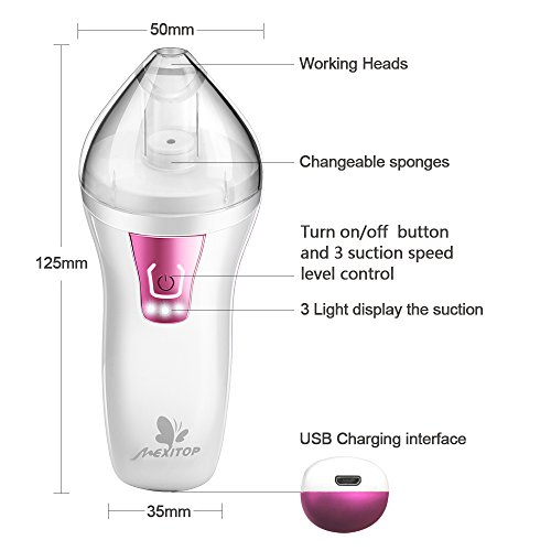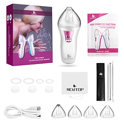 Blackhead Remover - Mexitop Mini Facial Pore Cleaner, Electric Blackhead Extractor Tool Set with 4 Microcrystalline probe, 3 Adjustable Suction Levels for...