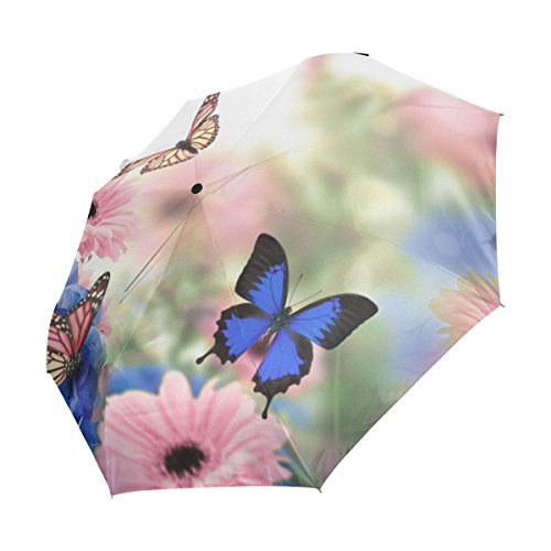 (ALAZA)/Accessories/Umbrellas/DIRECT FROM USA/Cooper girl Butterflies In Flowers Jungle Auto Open Close Rain Umbrella Anti-UV Waterproof for ...