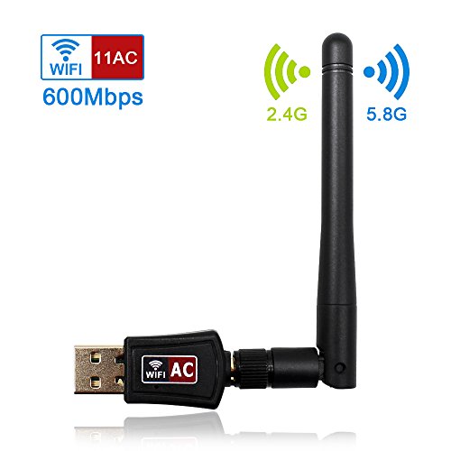 -. Feature : High speed 802.11ac WiFi adapter, 3 times faster than the traditional 11n network speed,can automatically adjust the wireless speed according to the network environment. Perfectly suitable for online games and seamless high-definition video viewing / Compatible with Windows2000 /XP/Vista / 7/8/10, Mac OS X 10.4-10.11 system, plug and play / Up to 600Mbps high speed on 5.8GHz 433Mbps and 2.4GHz 150Mbps band. Dual band reduce interference for better connection to more Wi-Fi devices / 2dbi detachable omni-directional dual-band antenna for enhanced coverage and stability, full rotation, easy setup / Work with any WiFi routers: By using the AC600 AC wireless adapter, you can upgrade your PC,laptop or Mac to work with the latest AC WiFi router for faster speed and extended range.