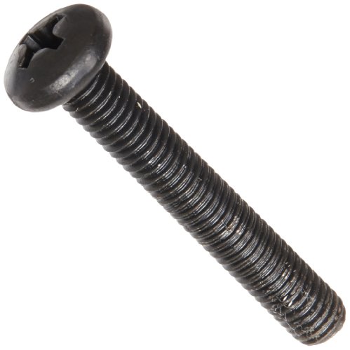 Steel Pan Head Machine Screw, Black Oxide Finish, Meets ASME B18.6.3, #2 Phillips Drive, #10-32 Thread Size, 1-1/4" Length, Fully Threaded, Import (Pack of 100)