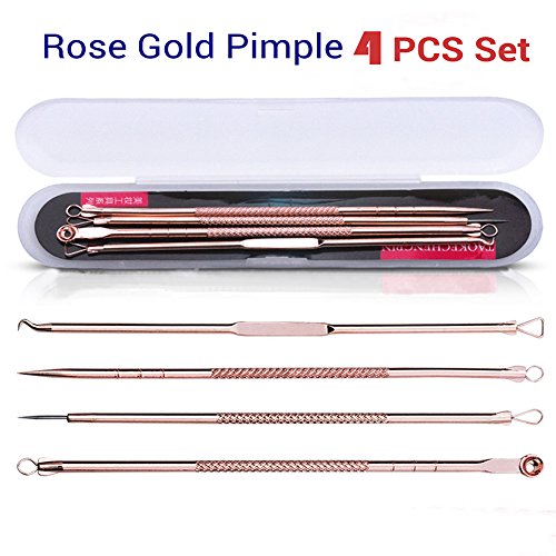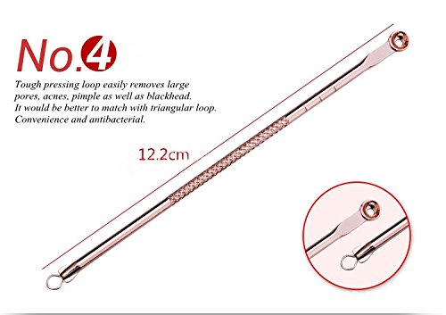 Blackhead Remover Kit,Comedone Extractor Tool, Anti-microbial Double-side 4 Pieces, Treatment for Blemish, Whitehead Popping, Zit Removing for Risk Free Nose