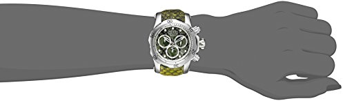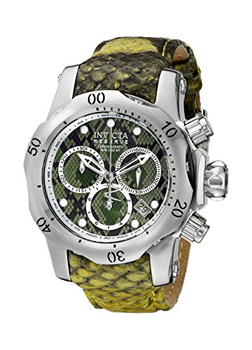 -. Feature : Chronograph functions with 60 second, 30 minute and 1/10 of a second subdials; date window between 4:00 and 5:00; Invicta reserve 5-year warranty included with shipment / Green dial with reptile print, silver tone and white hands and hour markers; luminous; unidirectional stainless steel bezel; screw-down crown and pushers; flame fusion crystal; stainless steel case; green leather strap with reptile design / Swiss-quartz Movement / Case Diameter: 42mm / Water Resistant To 3280 Feet