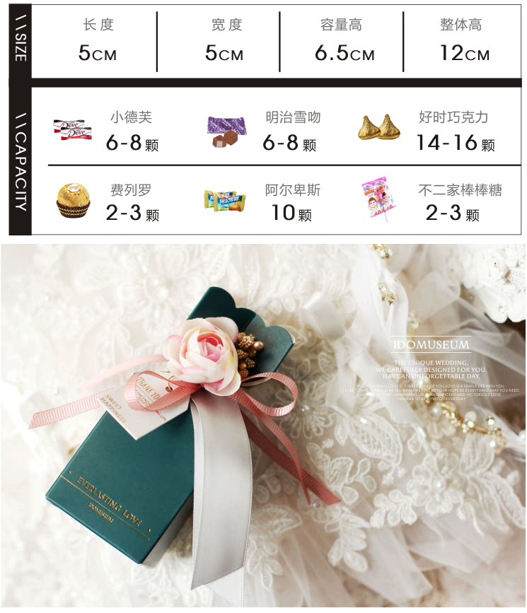 邂逅伊瓦尔の唯美森系欧式婚礼喜糖盒 创意婚庆结婚喜糖个性包装