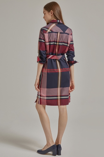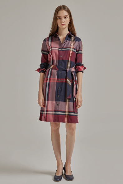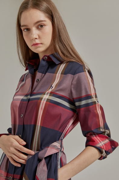 컬러를 더한 체크 패턴이 돋보이며 허릿단의 탈착 가능한 벨트를 더해 여성스러운 외관을 연출한 긴팔 원피스입니다.