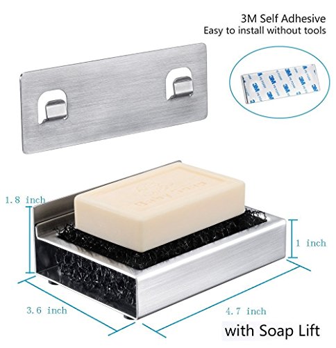 Glam Hobby Soap Dishes Self Adhesive Soap Dish for Shower Bathroom, Brushed Stainless Steel Soap Holder for Kitchen, Stick on Soap Tray, Wall Mounted Soap Rack, Stainless Steel (1)