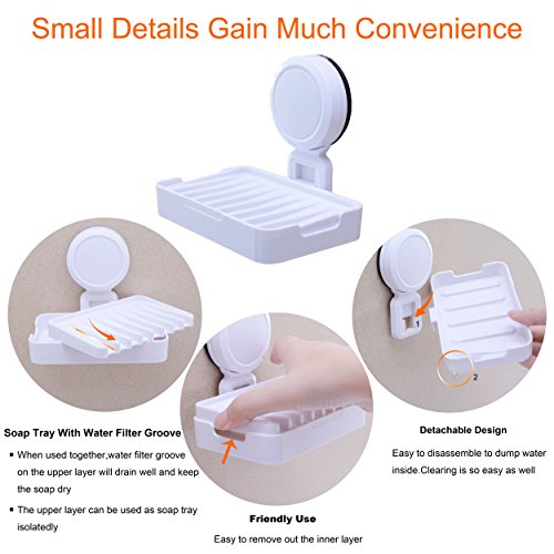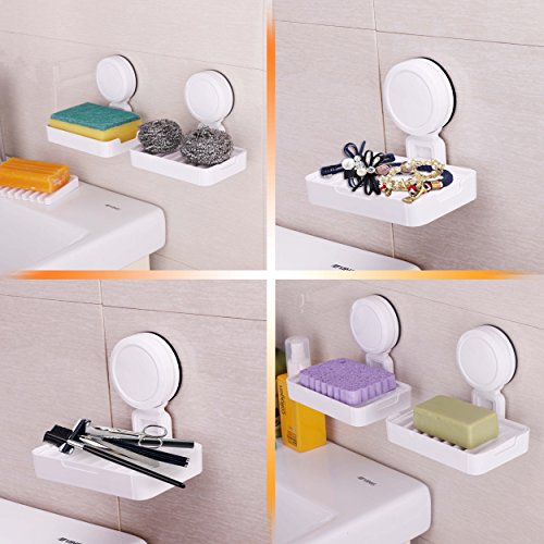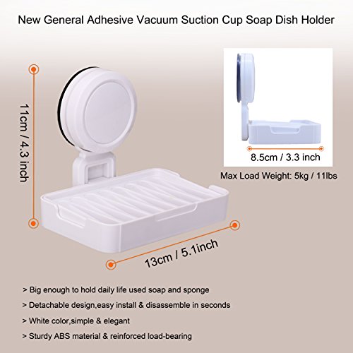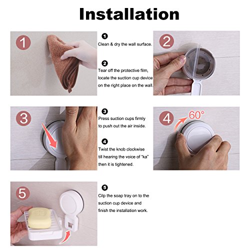 - * Easy & Fast Installation * - Adopt new general strong adhesive vacuum suction cup technology.Installation can be done only in a few seconds without any tools.No Drilling,No Nail,No Hole,this soap dish holder can be firmly mounted on the wall,no worry dropping down.It can be also removed very easily from the wall without any trace.Clean it by water and dry it for relocating and repeated use.