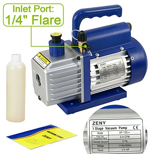 ZENY 3,5CFM Single-Stage 5 Pa Rotary Vane Economy Vacuum Pump 3 CFM 1/4HP Air Conditioner Refrigerant HVAC Air tool R410a 1/4" Flare Inlet Port, Blue