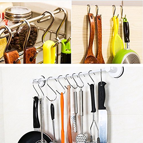 - STURDY AND S SHAPED --- Hanging hooks are made of stainless steel, strong and can withstand weight. Curved hangers securely hook the items and do not slide off easily.