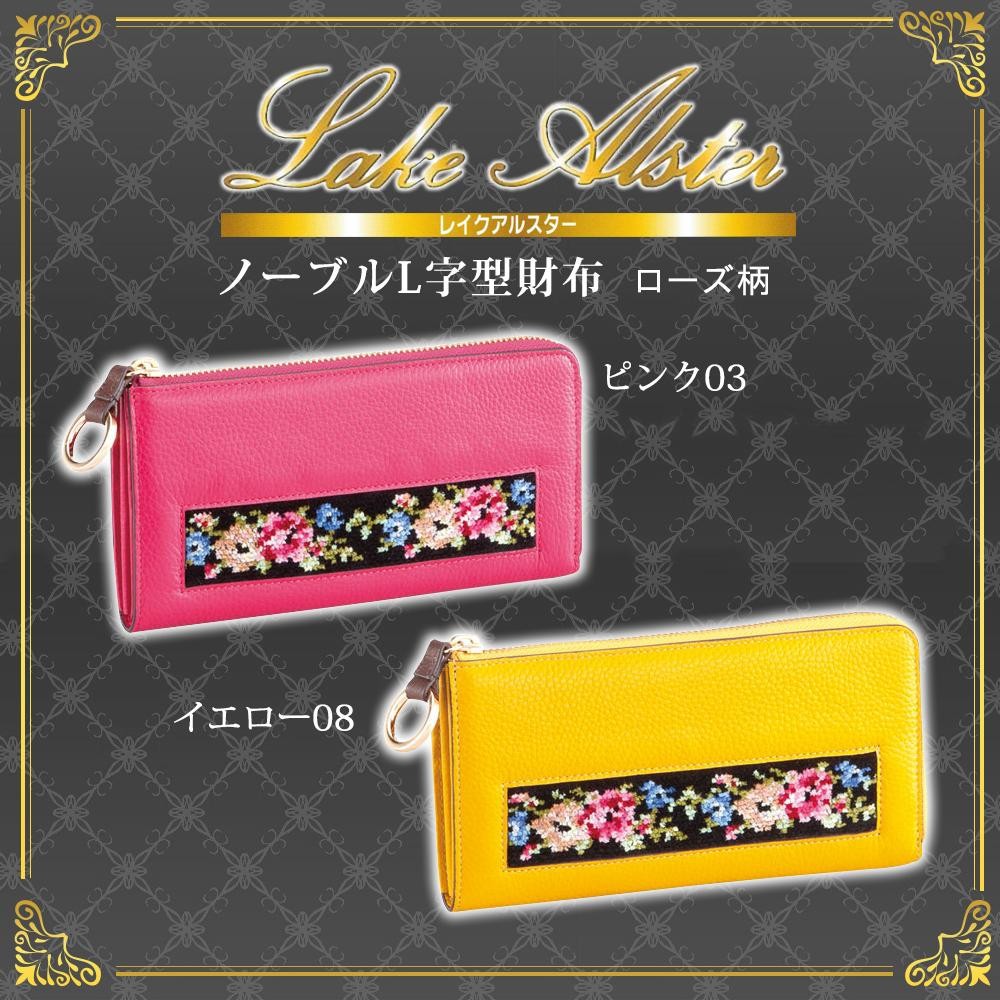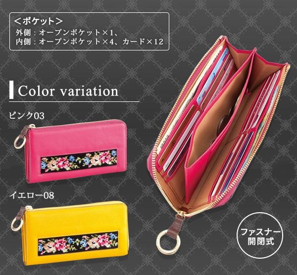 | 牛革にローズテープをあしらった上品なL字型財布。 |