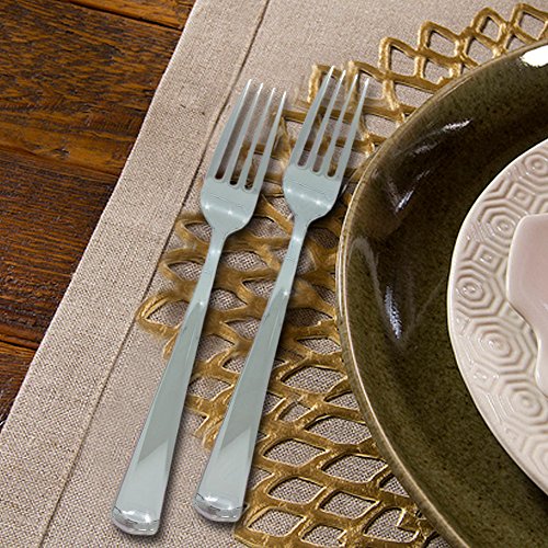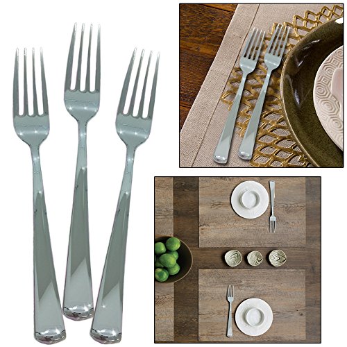 HIGH QUALITY SILVER WITH ENDLESS SHINE!! Your guest will not see a difference between real silver and stainless steel china and these plastic silver forks when served with these elegant forks.