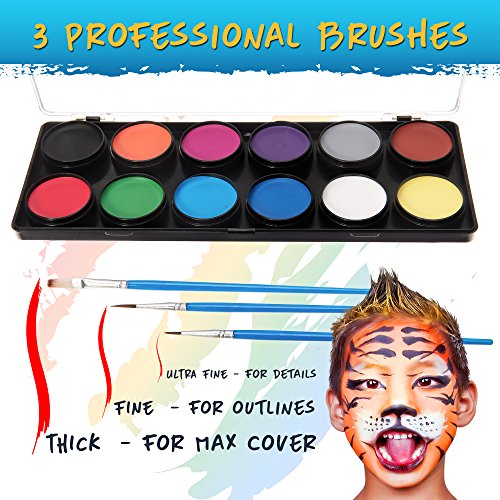 - A COMPLETE FACE PAINTING KIT: You'll also receive 30 reusable Stencils, a thick brush for maximum coverage, a thin brush for outlines and an ultra-thin brush for perfect detail work. Your Blue Squid face paint for kids is a COMPLETE face painting kit for one value-packed price! Ideal for school, church, festivals, carnivals, birthday parties, cosplay, prime sports, football events, theatre performances, role play, or any fictitious superhero type character and not to forget Halloween!