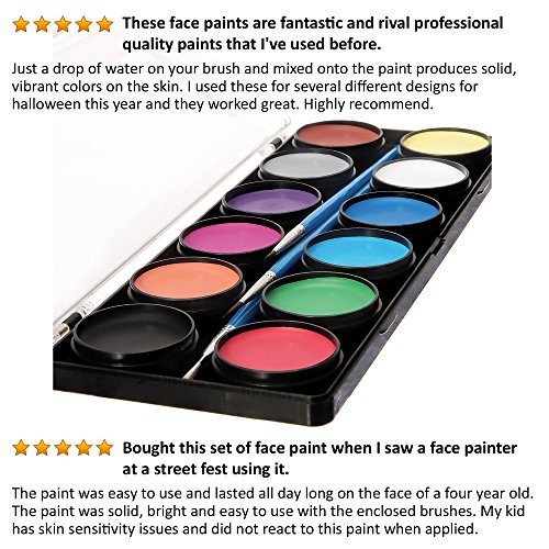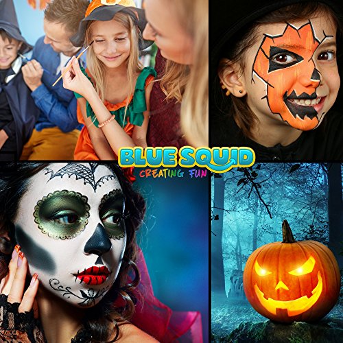 - BRIGHT, VIVID COLORS: You'll marvel at the bright vibrant colors in your Blue Squid Professional Face Painting Palette – it's like painting with a rainbow! And that's not all: unlike similar products, your best quality Blue Squid facepaint includes enough paint per color to be used for 100+ faces! Supplied in a STURDY reusable plastic carry case.