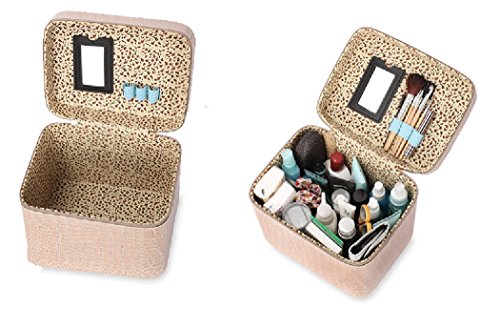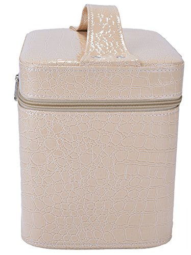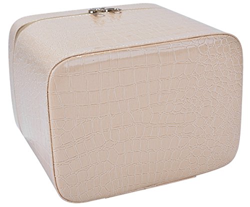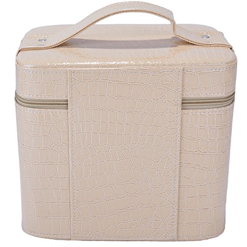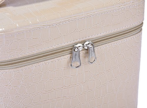 Coofit Beauty Box Crocodile Pattern Leather Makeup Case for Women Large Beige