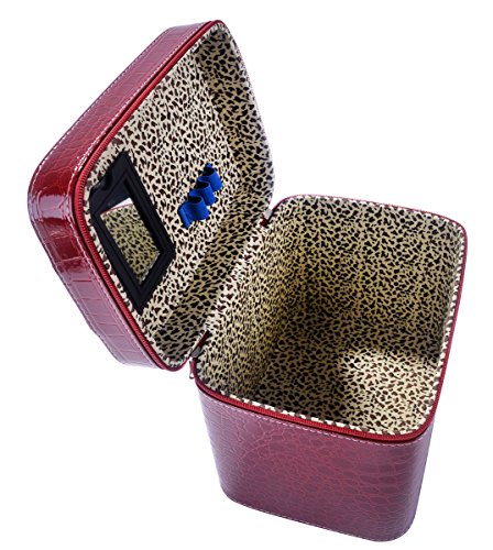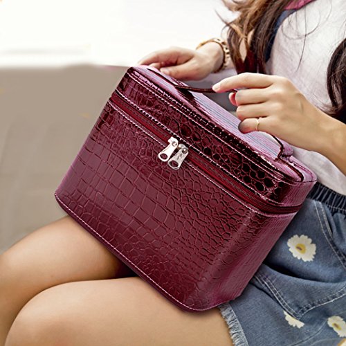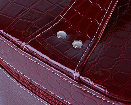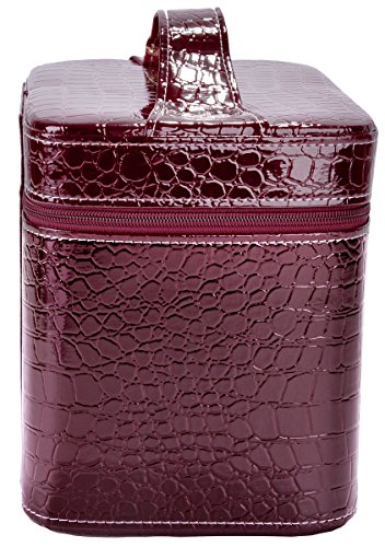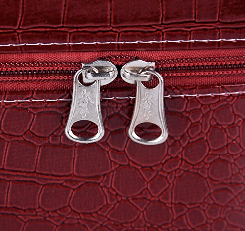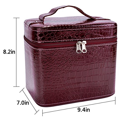 Coofit Beauty Box Crocodile Pattern Leather Makeup Case for Women Large Dark Red