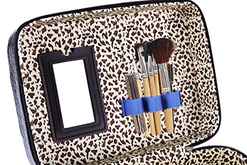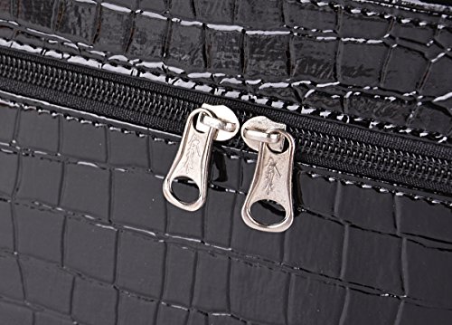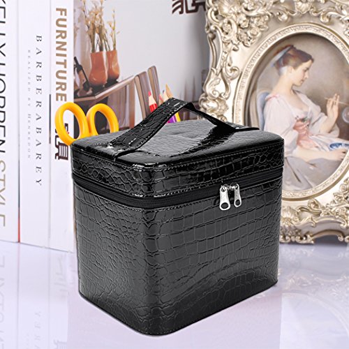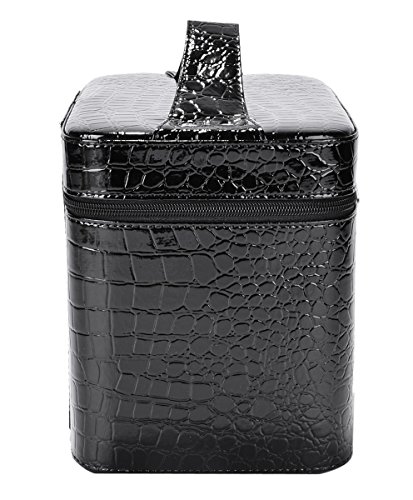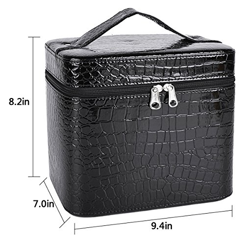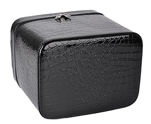 Coofit Beauty Box Crocodile Pattern Leather Makeup Case for Women Large Black