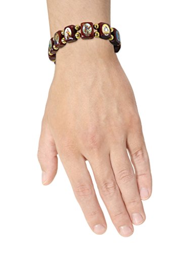 Elasticated Wooden Small Square Catholic Saints Bracelet - Assorted Catholic Images Features :- • Large wood blocks with gold color beads spacer