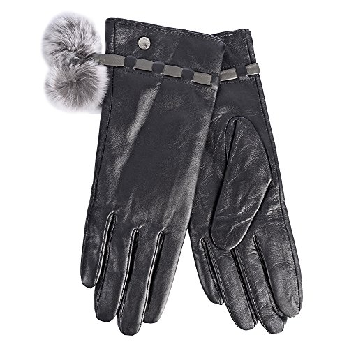 Binding : Apparel Product Description Luxurious rich leather glove to keep you warm and stylish on those cold winter days. The complete palm is I-Touch compatible, no more I-touch gloves that only work on the edge of the fingertips. The faux fur lining will keep you warm and comfortable and the fur popom offers elegant styling brought to you by Club Rochelier. Available in small, medium and large. 0