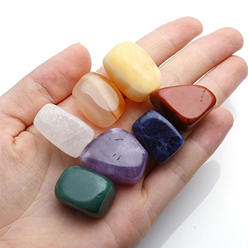 Gemstone Material: Amethyst--Sahasrara(Or Crown Chakra), White Crystal--Ajna(Or Third-Eye Chakra), Dyed Lapis Lazuli--Vishuddha(Or Throat Chakra), Green Aventurine--Anahata(Or Heart Chakra), Topaz--Manipura(Or Solar plexus/navel chakra), Red Jasper--Muladhara(Or Root Chakra), Carnelian--Svadhishthana(Or Sacral Chakra). Good for home decor or chakra crystal healing