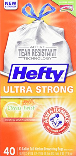 Hefty Ultra Strong Tall Kitchen Drawstring Trash Bag, Citrus Twist, 40 Count