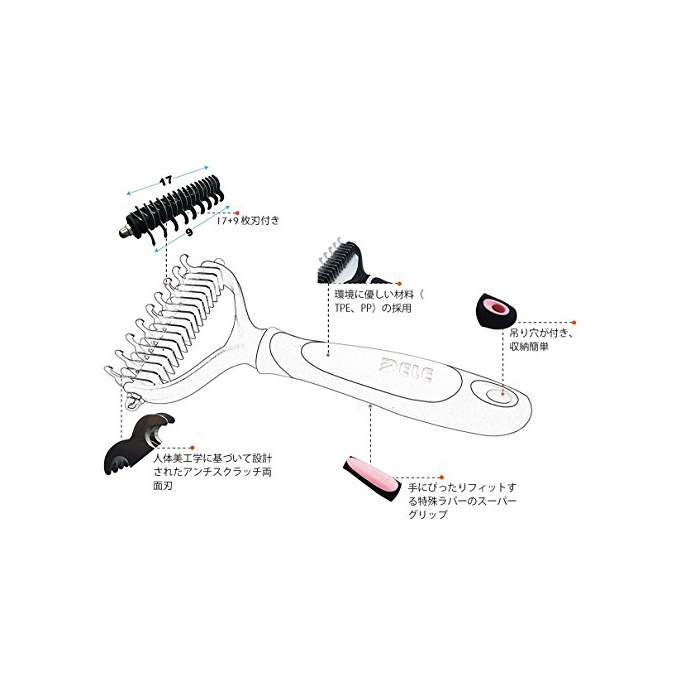 원본상품명:DELE (デリ) 毛玉とり 17枚刃付き 長毛種 犬 猫 中大型 ピンク Q-008NH-PK