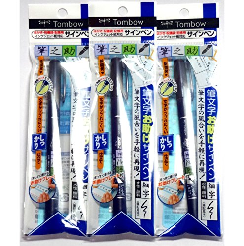 Tombow Fudenosuke Brush Pen Hard, 3 pens per Pack (Japan import) [Komainu-Dou Original Package]