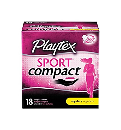 Playtex Sport Regular Absorbency Compact Tampons, 18 Tampons (Pack of 2)
