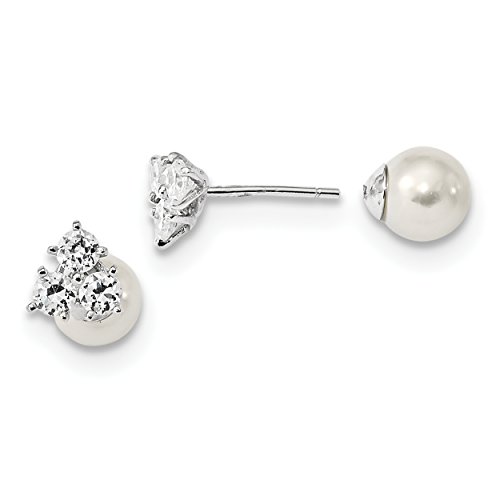 ICECARATS DESIGNER JEWELRY 925 STERLING SILVER CUBIC ZIRCONIA CZ MOTHER OF PEARL FRONT BACK POST STUD BALL BUTTON STUD EARRINGS