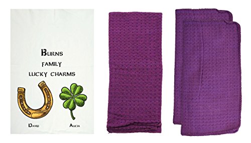 R&R Textile Mills 8 Piece Personalized Lucky Charms Dishcloth Set, Violet