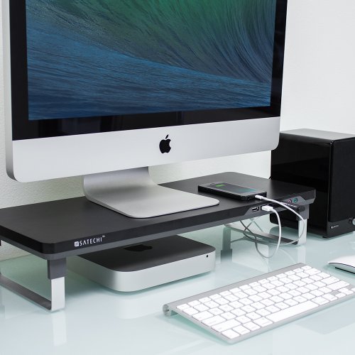 Satechi F3 Smart Monitor Stand with Four USB 3.0 Ports and Headphone / Microphone Extension Ports (Black)
