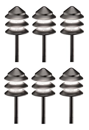 6 Pack Malibu 8301-9202-06 Metal, 3 Tier Pathway Pagoda Lights, 7 watts, Landscape Lighting with Black Finish BY MALIBU DISTRIBUTION