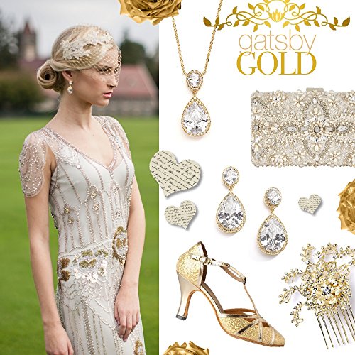 All eyes will be on you as you make your grand entrance wearing these stunning Cubic Zirconia clip-on designer earrings in Genuine 14K Gold plating. Right off the couture runway, these top-selling non-pierced dangle earrings are the perfect accessory for your wedding or bridal gown, cocktail dress or any special occasion frock. With their gorgeous Gold finish and gleaming AAAAA quality gemstones, these clip back earrings are guaranteed to turn heads everywhere you go! Add these Lifetime Guaranteed stunners to your jewelry collection and enjoy them for years to come. Complete the look with Mariell Design's elegant coordinating style 2074N-G sold separately. We promise you'll adore these top selling stunners or your Money-Back. Treat yourself or someone you love to some seriously gorgeous sparkle with the look of fine jewelry at a fabulous low price. Enjoy Mariell's exclusive 100% Risk-Free Purchase and Lifetime Guarantee.Feature