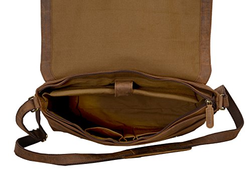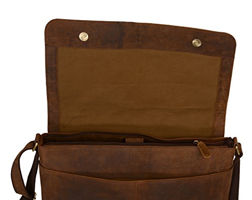 -. Feature : Made from the finest Hunter buffalo leather and lined with high quality canvas this bag is hand crafted by artisans working with leather for decades / Rustic Vintage look , concealed magnet closures for easy access , adjustable shoulder strap / Padded compartment for Laptop's ( fits upto 15" laptop / Macbook ), / Size: 15.5 "x 11" x 4" , Big front pocket to accommodate Ipad's files etc. Cards / phones and pen section inside , 1 external metal zipper for convenience / Zipper closure for main section for protection of contents. Designed by komal Chaudhari ( komal's passion leather) Can be used as a laptop bag , leather messenger bag , leather briefcase , courier bag, leather satchel