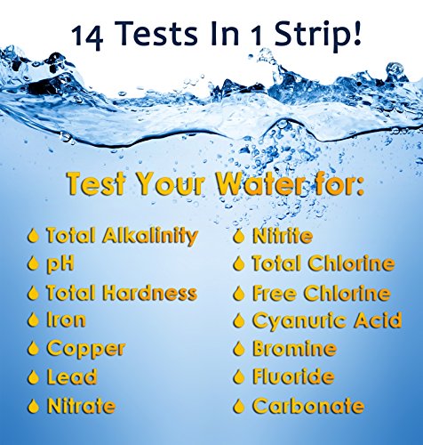 -. Feature : ✅WATER TEST STRIP PRO KIT BY ECOSAFE Is Super Easy To Read And Use. Quickly Test Water Softners, Drinking Water, Well Water, Pool And Spa Water And Aquariums For Various Types Of Tests All On One Strip. Simply Dip The Test Strip In Water, Match With The Color Chart On The Package, That's It. The Testing Process Couldn't Be Easier. As Accurate As Expensive Fancy Kits. Includes Clear And User Friendly Instructions And A Color Chart To Educate You About Your Water. / ✅ESPECIALLY FOR WATER SOFTENERS - Instantly Answer Questions About Your Water Softener. Use These Water Test Strips To Check If Your Water Softener Is Still Working. Test Your Water Before Installing Or Repairing An Expensive Water Softener System. Test Water After A Water Softener Has Been Installed. Check The Status Of A Water Softener To Know When It Needs To Be Recharged Or Add Salt Or Adjustments. Hint: Test Your Water Softener Before It Goes Out Of Warranty. / ✅PROTECT MAJOR APPLIANCES AND YOURSELF FROM HARD WATER DAMAGE - Hard Water Can Damage Household Items Like Refrigerators, Dishwashers, Washing Machines, Pool Pumps, Spas, Coffee Makers, Espresso Machines Over Time. Is Your Skin Drying Out? Do Towels Feel Hard? Clothes Dingy? Do You Have White Spots All Over Your Dishes From The Dishwasher? These Are All Signs Of Hard Water. Also Test For Safe Levels pH & Alkalinity In Your Pool And Spa. / ✅WARRANTY AND CONSTRUCTION - 5.0 Customer Feedback Rating. Water Test Strips Come In A Dark Bottle To Protect From Light That Can Affect Test Strips Accuracy. Comes In Tightly Secured Bottle To Protect From Air To Preserve Quality. Strips Are Made Of Solid Construction. Not Flimsy. 100% CUSTOMER SATISFACTION GUARANTEE. We Believe The Customer Should Get More Than They Paid For. Always! / ✅EASY TO READ RESULTS - Easily See And Match The Color On Your Test Strip To The Color Code On Bottle Without Bleeding. Accurately Distinguish One Shade From The Next. No Need To Double Check Or Test Multiple Times. No Contradicting Results Or False Positives. Readings Match Professional Water Test Results. No Need To Buy Expensive Equipment To Test Your Water. Test for ALKALINITY, PH, HARDNESS, IRON, COPPER, BROMINE, LEAD, NITRATE, NITRITE, CHLORINE, FREE CHLORINE, CYANURIC ACID, FLUORIDE.