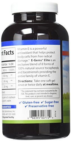 ReleaseDate : 2017-04-26 Studio : Carlson Labs Publisher : Carlson Labs Binding : Health and Beauty Product Description E-Gems Elite is an exclusive blend of the entire vitamin E family, including eight forms of all-natural tocopherols and tocotrienols. Research shows all-natural vitamin E forms offer many health benefits and play an important role in cardiovascular health and protecting the body from free radical damage. Natural-source vitamin E is twice as active in our bodies as synthetic vitamin E. 0