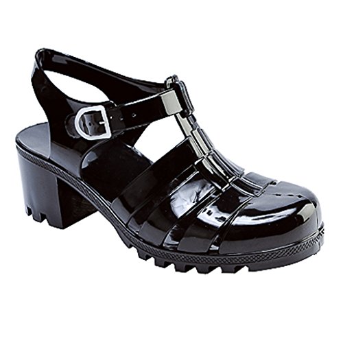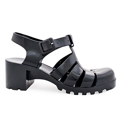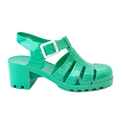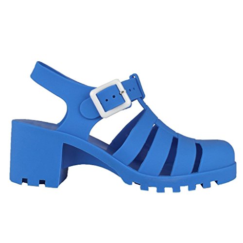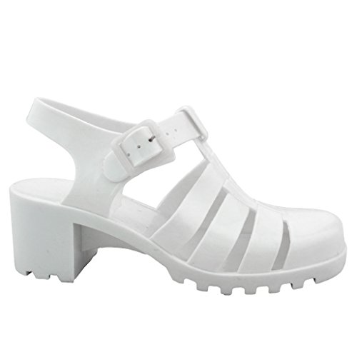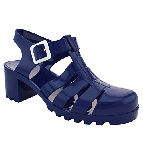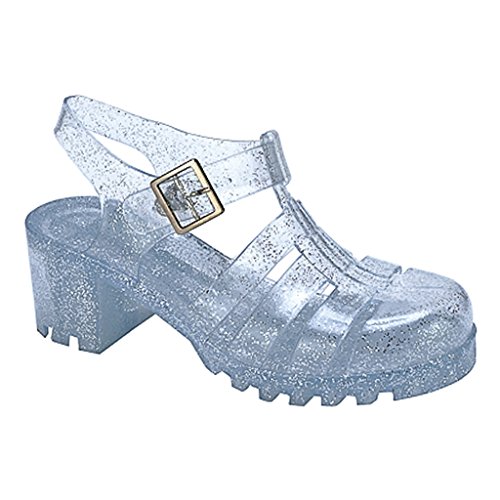 New Women Summer Retro Jelly Slingback Sandals Buckle Strappy Block Heel Shoes