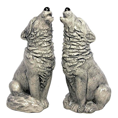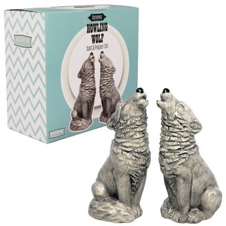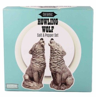 Howling Wolf Ceramic Salt and Pepper Shakers Set in a Gift Box