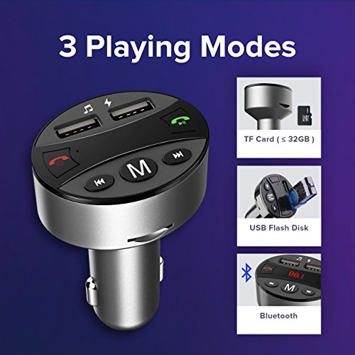 3 Playing Modes:This Bluetooth FM transmitter can transmit music from mobile phone, USB flash drive, TF card, tablet, MP3, etc. to car stereo system via FM signal. It supports 32G TF card and 32G USB flash disk