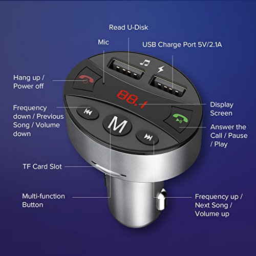 Mpow Bluetooth FM transmitter:To enjoy your music collection while driving. 2-in-1:FM Transmitter and Car Charger You can listen to your favorite music from mobile devices such as phones,tablets,USB flash drive,TF card,MP3,etc.